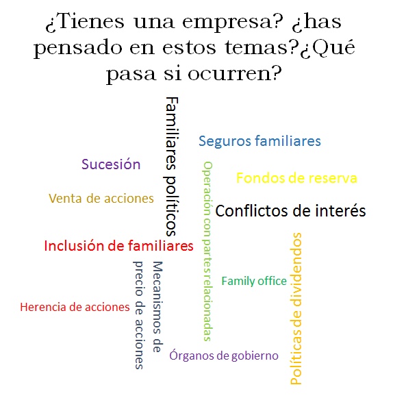 Todas las empresas con dos o mas accionistas, deben definir lineamientos sobre el actuar de los mismo en la empresa, en su relación y en actuar u operaciones fuera de la empresa. Por lo general, algunos lineamientos se encuentran establecidos en los estatutos sociales, sin embargo, es necesario revisar, actualizar y adecuar dichos temas con las necesidades actuales y futuras de los accionistas.